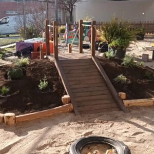 Aquest banc de fusta per exterior i amb respatller, per adults, és ideal per crear un espai de repòs al pati escolar.