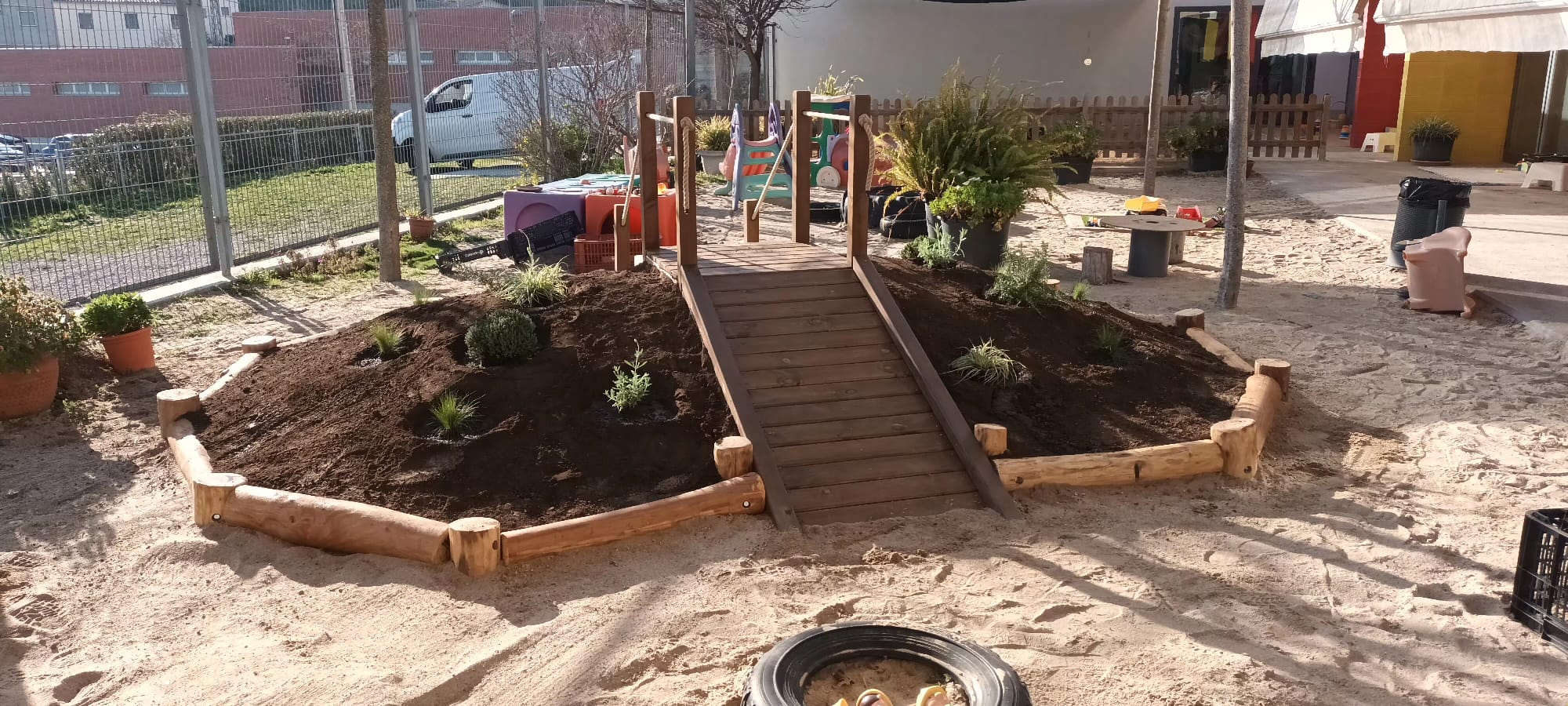 Muntanya de sorra amb vegetació, plena de reptes psicomotrius.